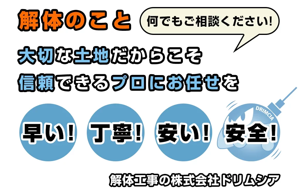 株式会社ドリムシアは、千葉市を中心に千葉県・東京都で解体工事業者として活動しています!